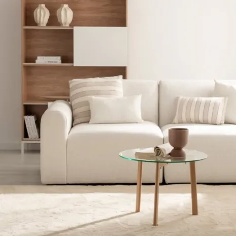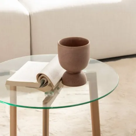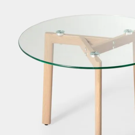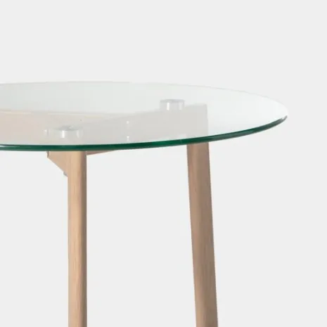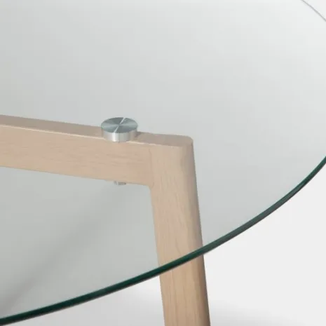 Dale un toque moderno y acogedor a tu salón con la mesa de centro redonda Eyre. Su tablero de vidrio templado y sus patas con acabado natural logran el equilibrio perfecto entre resistencia y estilo. Su diseño sencillo y versátil se adapta fácilmente a cualquier decoración y aporta amplitud al espacio. Combínala con el resto de la colección y crea un ambiente armonioso y elegante.
