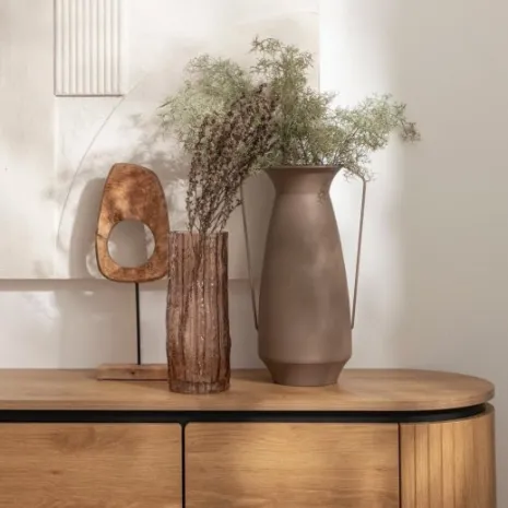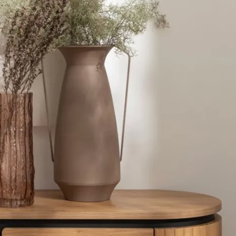 El jarrón metálico en color marrón Hypnos es un complemento decorativo versátil e ideal para cualquier espacio. Su diseño en forma de cántaro, inspirado en el estilo vintage, sigue las últimas tendencias y aporta un toque de elegancia atemporal a tu hogar. Fabricado en metal, destaca por su carácter y personalidad, convirtiéndose en una pieza que realzará tus muebles. Puede utilizarse tanto como elemento ornamental por sí solo o acompañado de flores y ramas para darle un toque natural.