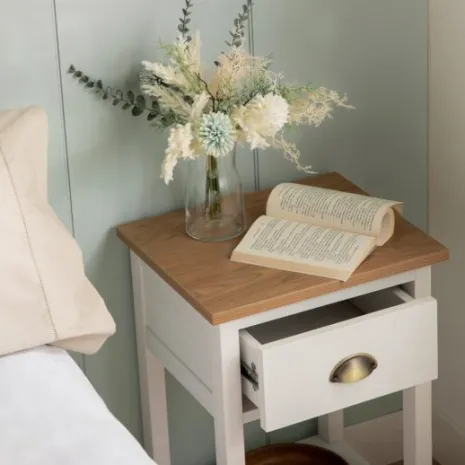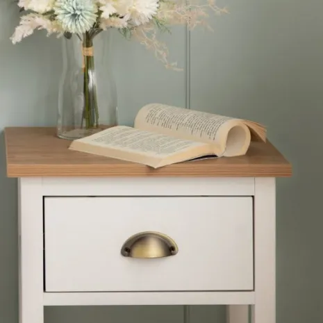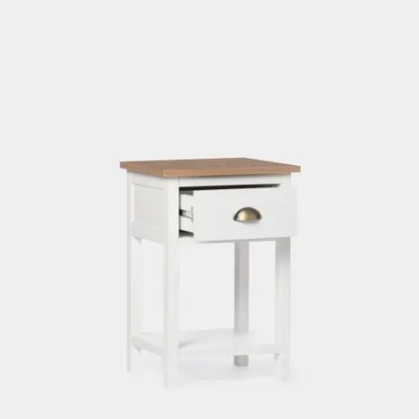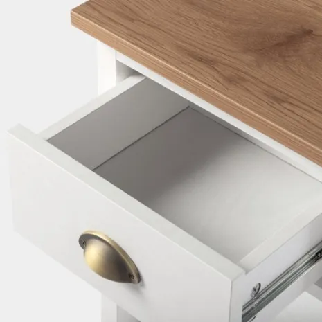 ¡Aprovéchate de este pack de mesitas! La mesita de noche blanca de un cajón Marais es un clásico que encaja en cualquier dormitorio. Cuenta con un cajón y con un estante inferior en el que podrás dejar todo lo que quieras tener a mano. El cajón cuenta con un sistema de cierre con retención que evita que se den golpes al cerrar e impide la apertura involuntaria. Combínala con la cómoda Marais y crea un dormitorio lleno de encanto.