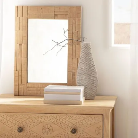 El espejo rectangular de pared en madera de mango Nicole es el complemento decorativo perfecto para vestir las paredes de tu salón, recibidor o dormitorio. Puedes colgarlo tanto en horizontal como en vertical. No se incluye la tornillería para su anclaje o sujeción a la pared. Al tratarse de un producto hecho a mano puede presentar pequeñas irregularidades que lo hacen único.