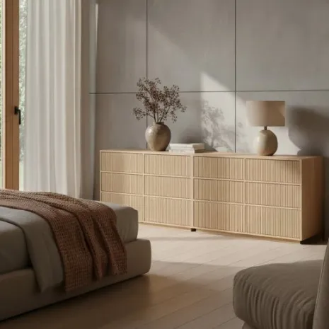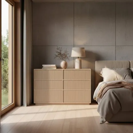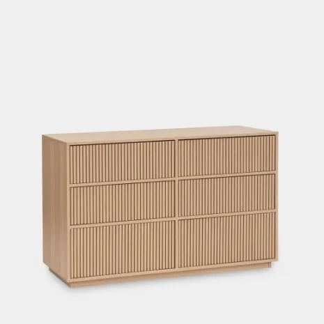 Transforma tu dormitorio con la cómoda Saven de 6 cajones en acabado madera natural. Esta pieza combina estilo y diseño, aportando un toque acogedor y elegante a tu espacio. Sus seis amplios cajones te proporcionan el espacio necesario para mantener tu ropa, accesorios y objetos personales bien organizados y accesibles. Es ideal para dormitorios o vestidores que buscan un extra de orden y sofisticación. Descubre el resto de la colección Saven y consigue un ambiente lleno de estilo.