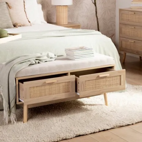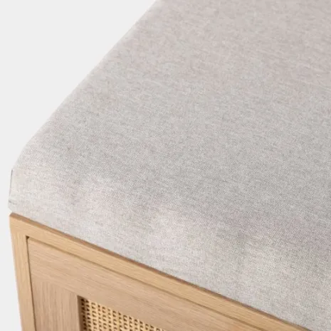 El banco en ratán natural con almacenaje y cojín Tahiti aportará un toque natural ideal a tu salón, recibidor o dormitorio. Cuenta con un mullido cojín que le aporta un extra de confort y con dos amplios cajones con los que ganarás espacio extra de almacenamiento. Combínalo con los muebles del resto de la colección y ¡consigue un efecto wow!