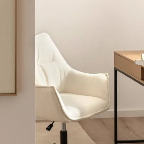 La silla de escritorio Holger combina diseño y funcionalidad para aportar un aire sofisticado a tu espacio de trabajo. Su tapizado beige y líneas estilizadas crean una estética elegante y contemporánea en cualquier ambiente. Con reposabrazos, altura regulable, sistema giratorio y ruedas, te ofrece la comodidad necesaria para trabajar a gusto cada día. Su estilo único la convierte en una pieza especial que marca la diferencia en tu hogar.