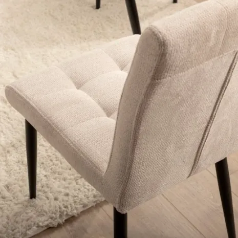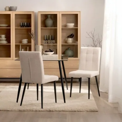 La silla de comedor tapizada Leia en beige con pata negra es ideal para quienes buscan combinar estilo, confort y sofisticación en su comedor. Con su diseño elegante y el detalle de capitoné en el respaldo, la silla Leia será un complemento perfecto para reuniones familiares y cenas formales. Disponible en varios acabados, escoge el que mejor encaje con tu estilo.