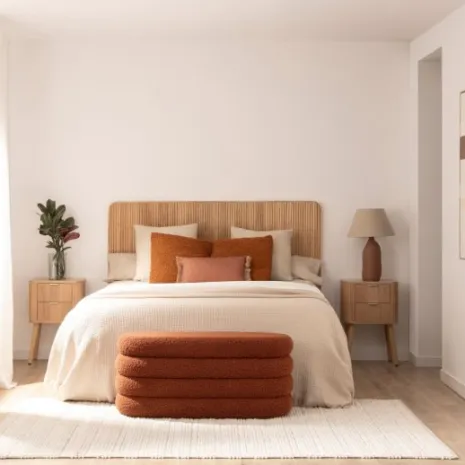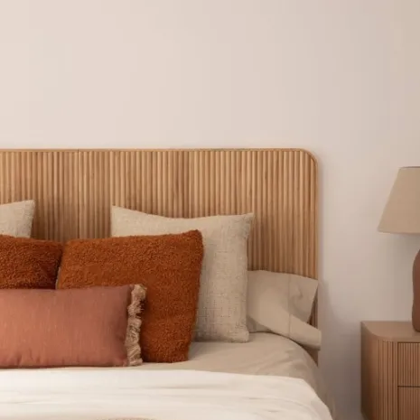 Dale un toque especial a la decoración de tu dormitorio con el cabecero Onni, fabricado en madera de paulownia. Su diseño aporta calidez y serenidad, creando un ambiente acogedor y relajante. Se puede utilizar en camas de 135, 150 y 160. Para mayor estabilidad puedes anclarlo a la pared, la tornillería no está incluida.