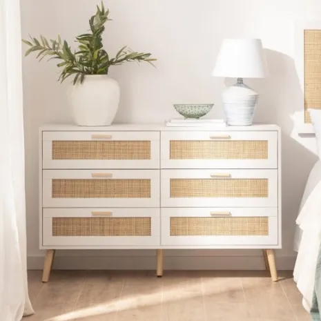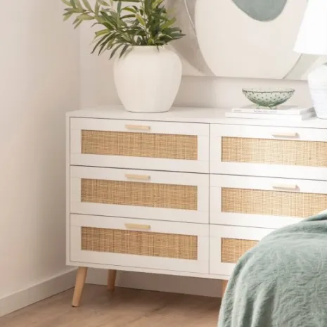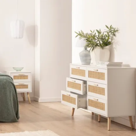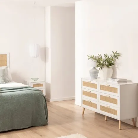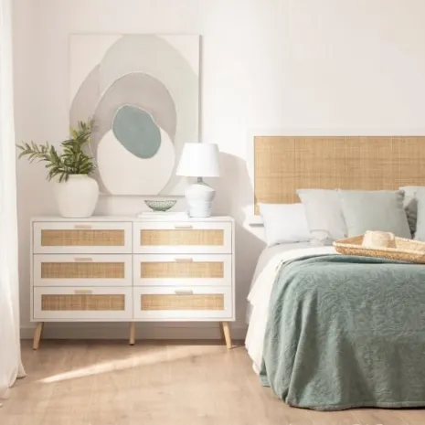 - PB, melamina, ratán natural