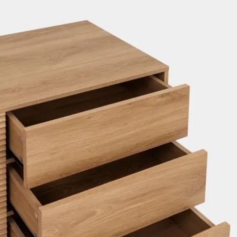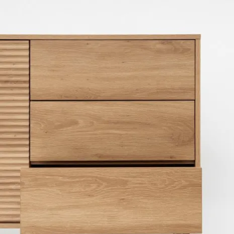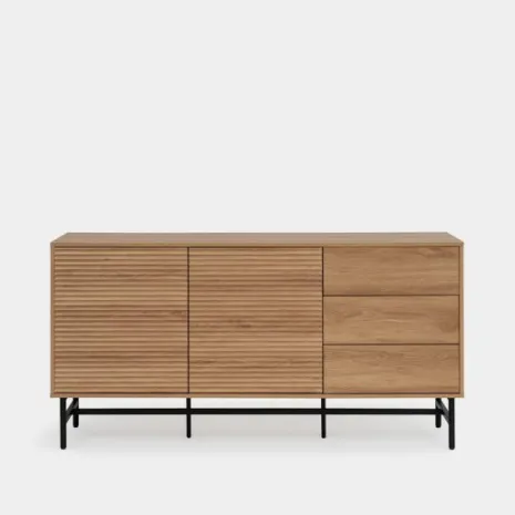 Realza tu comedor con el aparador Land en acabado natural. Es la pieza ideal si buscas un diseño moderno que combine la calidez de la madera con la solidez del metal. Su diseño combina tres amplios cajones, perfectos para cubiertos y pequeños accesorios, con dos puertas de almacenamiento para guardar objetos de mayor tamaño de forma ordenada. Descubre el resto de la colección Land y dale un nuevo aire a tu hogar.