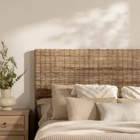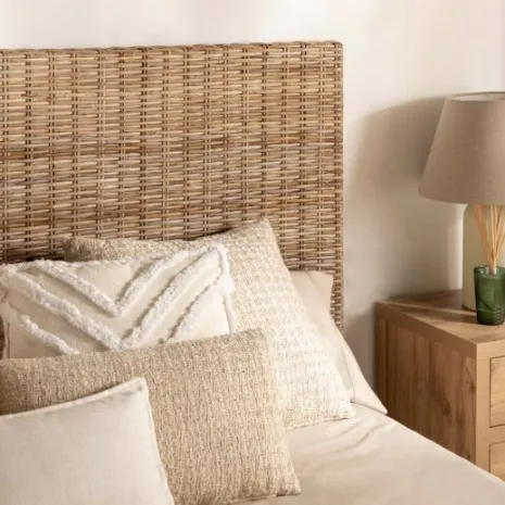Consigue un ambiente natural y vintage en tu dormitorio con el cabecero Leni de ratán natural. Elaborado artesanalmente trenzando ratán natural, este cabecero puede presentar algunas irregularidades propias de la naturaleza del material. Compatible con camas de 135, 150 y 160 cm. Recomendamos su anclaje a la pared. La tornillería no está incluida.