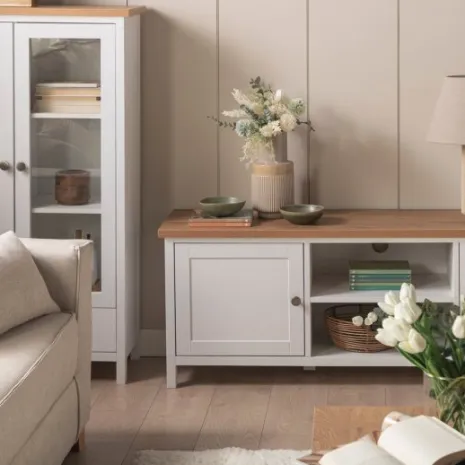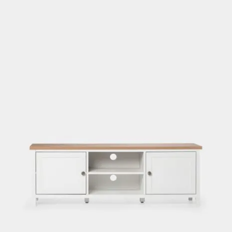 El mueble TV blanco de estilo contemporáneo Marais es la pieza ideal para el salón. Tiene un diseño clásico y atemporal que combina perfectamente con cualquier estilo decorativo. Además, cuenta con dos amplias puertas con las que conseguirás espacio de almacenaje extra. Combínalo con la vitrina Marais y crea un espacio lleno de encanto.