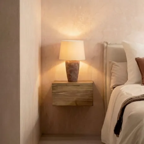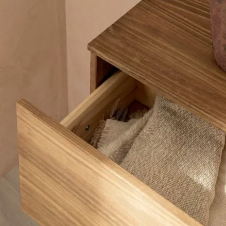 ¡Aprovéchate de este pack! Renueva tu dormitorio con la mesita de noche flotante de 1 cajón Kari, fabricada en madera maciza con acabado en color nogal. Su diseño suspendido optimiza el espacio creando sensación de amplitud y ligereza visual, mientras ofrece almacenamiento práctico y discreto. Al estar fabricada con madera natural, pueden apreciarse variaciones en el color y la textura, lo que realza su encanto artesanal y su autenticidad.