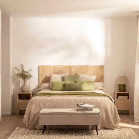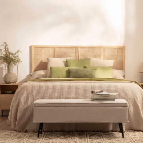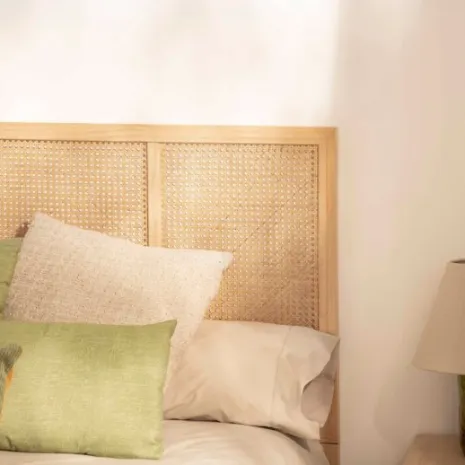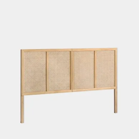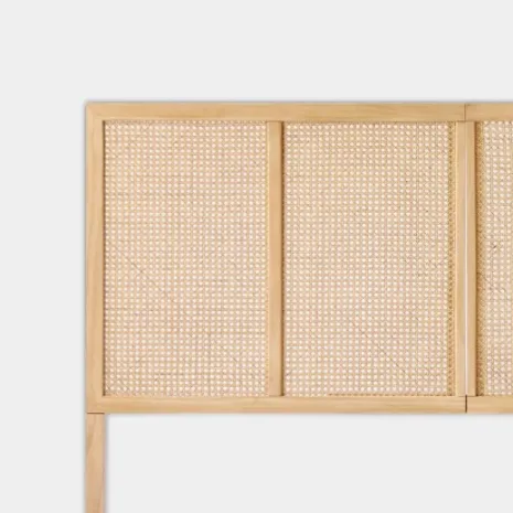 El cabecero de cama Katri fabricado en madera de pino y ratán natural aportará calidez y calma a tu dormitorio. El ratán ha sido trenzado a mano, por lo que puede presentar alguna irregularidad propia de la naturaleza del material y del proceso de fabricación artesanal. Se puede utilizar en camas de 135, 150 y 160. Para mayor estabilidad puedes anclarlo a la pared, la tornillería no está incluida.