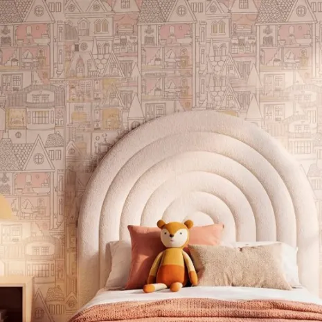 El cabecero Kio es la pieza ideal para aportar personalidad y calidez a la habitación de tu pequeño. Su diseño único en forma de arco y el suave tejido bouclé en color beige crean un ambiente acogedor y tranquilo, perfecto para su zona de descanso. Compatible con camas de 80 o 90 cm. Disponible en varios acabados para que escojas el que mejor se adapte a su espacio.