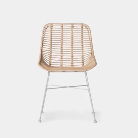 La silla en ratán natural con pata blanca Lui aportará confort y calidez a tu hogar. Está formada por una estructura metálica y un asiento elaborado de forma artesanal con ratán natural. Por ello, puede presentar irregularidades propias de su elaboración y ligeras variaciones en la tonalidad respecto al color que se muestra en la imagen.