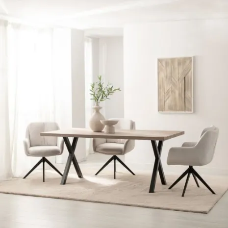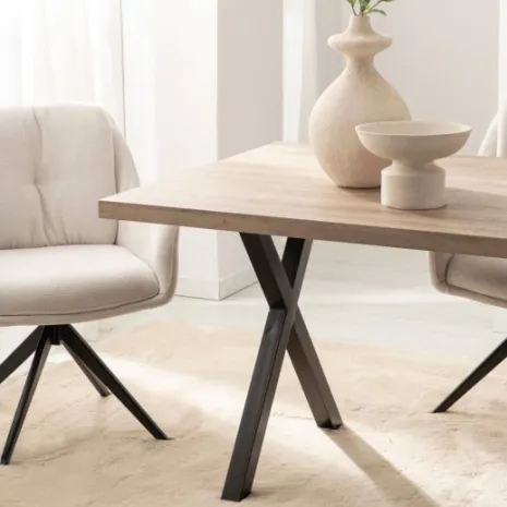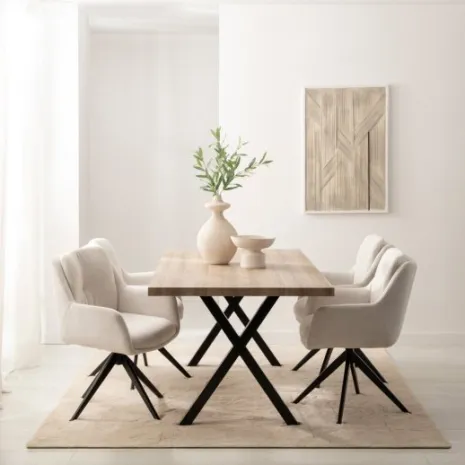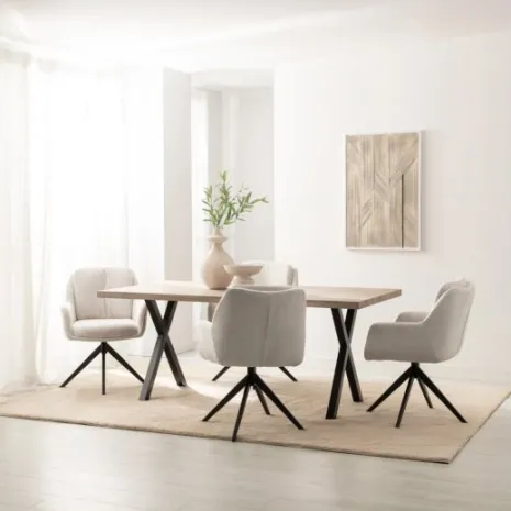 Potencia tu salón con la elegancia de la mesa de comedor rectangular Parks. Con su sobre de acabado natural y sus patas metálicas negras en forma de cruz, añade un toque contemporáneo y de moda a cualquier entorno. Con capacidad para 6 comensales, es la opción ideal para compartir momentos memorables con tus seres queridos. Su estilo atemporal la convierte en el complemento perfecto para tu salón comedor, cocina o incluso como mesa de reuniones en tu espacio de trabajo.