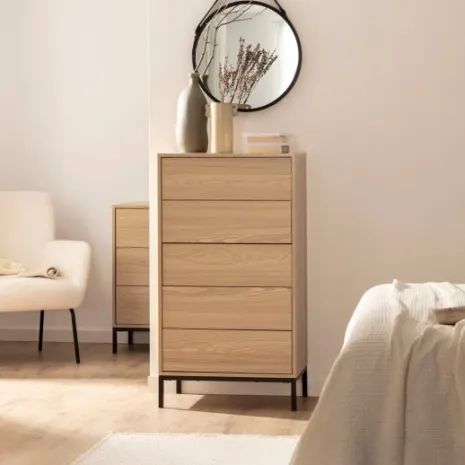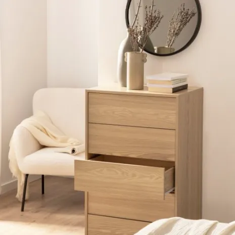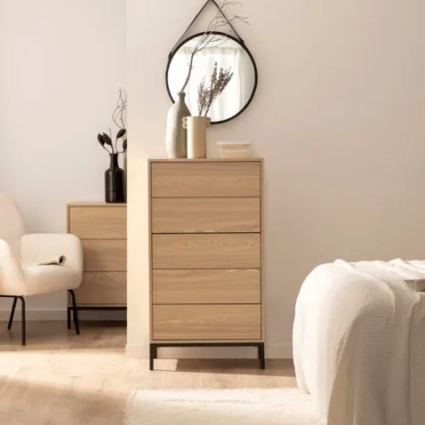 Añade un toque de elegancia y practicidad a tu hogar con la cajonera Remi. Esta estilizada pieza ofrece una solución de almacenamiento vertical que ahorra espacio y mantiene tus pertenencias organizadas. Sus cinco amplios cajones son ideales para guardar ropa, accesorios y otros objetos personales. Completa la decoración de tu hogar con la elegancia y practicidad de la colección Remi.