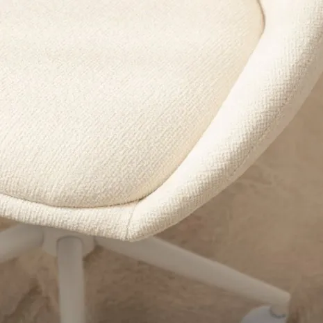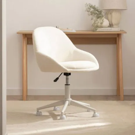 La silla de escritorio Ania es la combinación perfecta entre elegancia y funcionalidad para tu espacio de trabajo. Su tapizado en beige y el asiento acolchado aportan calidez y estilo sin dejar de lado la comodidad. Con su sistema giratorio, altura regulable y ruedas tendrás total libertad de movimiento para encontrar la posición ideal. Está disponible en otros colores, para que elijas la opción que más te guste.