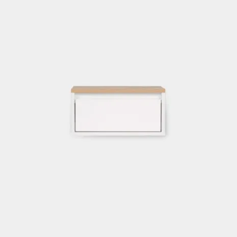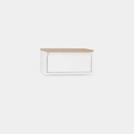 La mesita de noche flotante Mune aporta un toque fresco y elegante a tu dormitorio. Su acabado blanco detalles en madera natural crea un contraste sofisticado que se adapta a múltiples estilos decorativos. Su amplio cajón ofrece el espacio justo para guardar tus elementos esenciales de manera ordenada y accesible. Su diseño flotante optimiza el espacio y aporta sensación de amplitud. Ideal para quienes valoran la simplicidad y el estilo en su hogar.