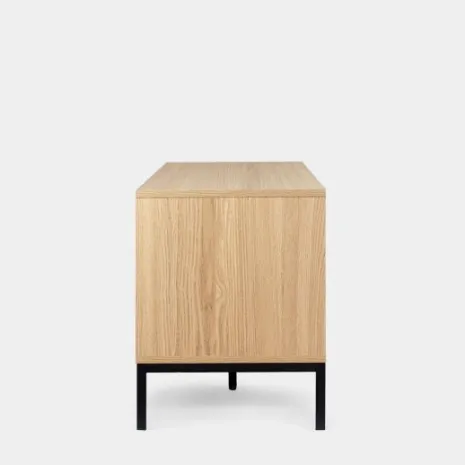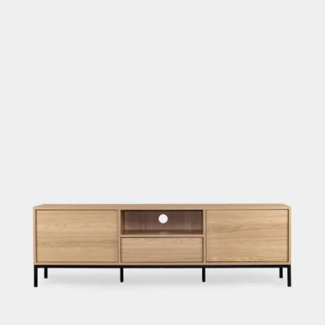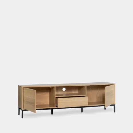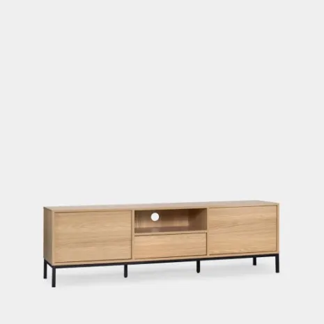 Eleva el estilo y la elegancia de tu sala de estar con el mueble TV 160 en madera color natural Remi. Su hueco central y cajón ofrecen espacio para organizar dispositivos electrónicos, accesorios y otros elementos multimedia de forma ordenada y accesible. Además, cuenta con dos puertas ideales para almacenar aquellos objetos que prefieres mantener fuera de la vista. Añade un toque distintivo a tu hogar con la elegancia y practicidad de la colección Remi.