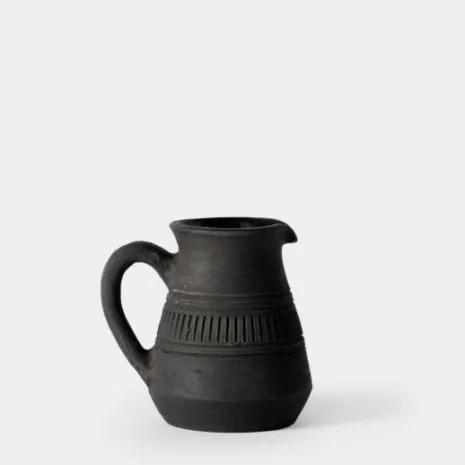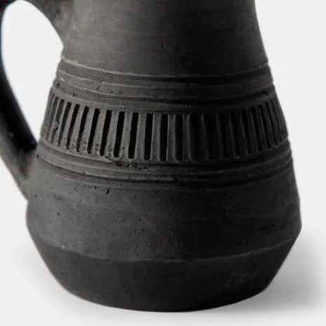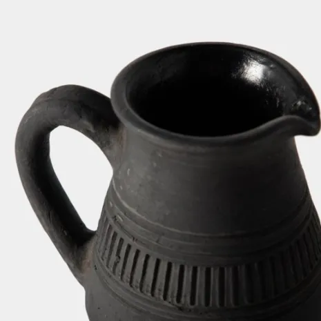 El jarrón de terracota negro Vórtice es una pieza única hecha a mano en la India. Su forma irregular y superficie imperfecta, con huellas de las manos y las llamas que lo cocieron, le otorgan un carácter rústico y auténtico. Fabricado con terracota, un material natural y sostenible, el jarrón es impermeable, aunque puede humedecerse ligeramente con el tiempo. Su diseño en forma de jarra y acabado negro lo convierten en un elegante accesorio decorativo para cualquier espacio.