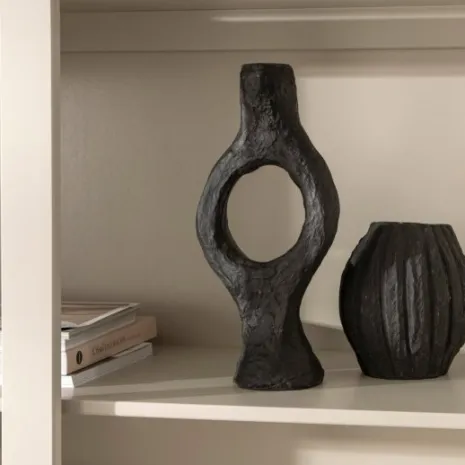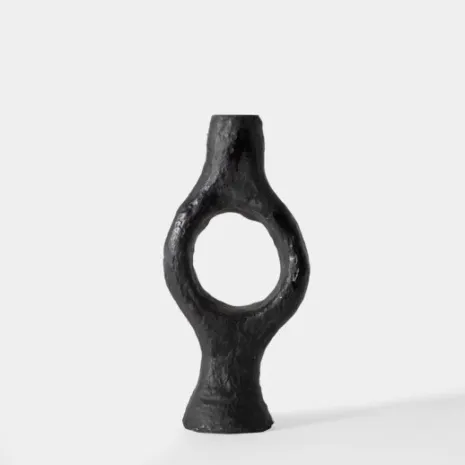 El portavelas de papel maché color negro Cauro presenta un diseño moderno y escultórico. Su forma orgánica, le da un aire contemporáneo y distintivo, convirtiéndolo en una pieza decorativa llamativa. Ideal para una vela delgada, su acabado en negro mate agrega elegancia y sofisticación a cualquier espacio. Perfecto para complementar ambientes modernos o minimalistas, este portavelas no solo es funcional, sino también un elemento artístico que resalta por su diseño único.