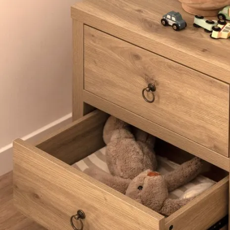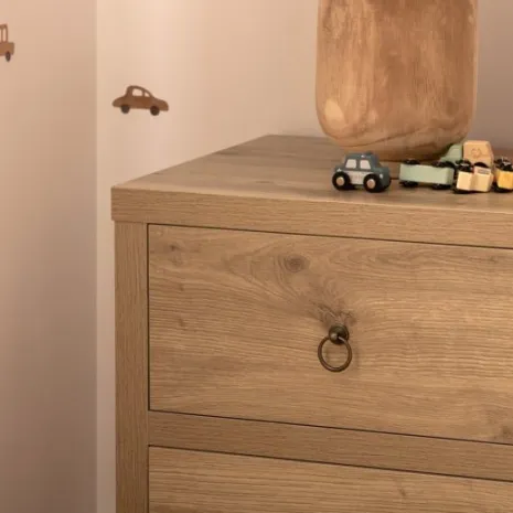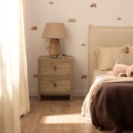 Si buscas una habitación cálida y acogedora para tu hijo, la mesita de noche en madera natural Livorno es la pieza perfecta. Cuenta con dos amplios cajones donde podrá guardar todas sus cosas favoritas y tenerlas siempre a mano. Completa su cuarto con los muebles del resto de la colección y dale ese toque especial que estás buscando.