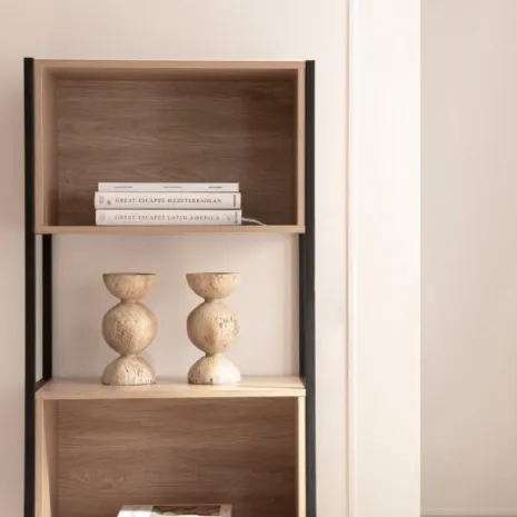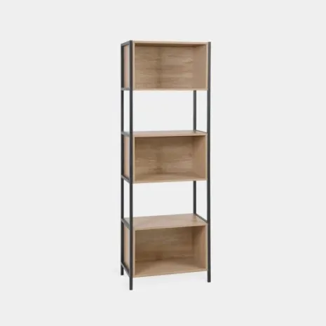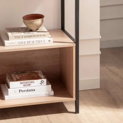Consigue dar un toque de estilo a tu hogar con la estantería Orlan, en color madera natural y patas metálicas negras. Gracias a su diseño moderno y minimalista se adapta perfectamente a cualquier tipo de ambiente. Crea una combinación única al unirla con otras estanterías Orlan de forma modular, para personalizar tu espacio de almacenamiento según las necesidades de tu hogar. Está también disponible en su versión de 84 cm.