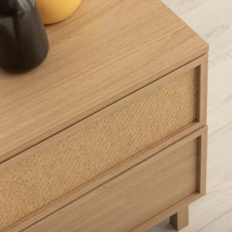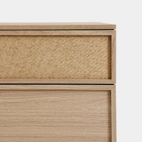 La mesita de noche Bora, elaborada en madera color natural y fibra natural, es la opción perfecta si buscas crear un dormitorio cálido y acogedor. Sus dos amplios cajones ofrecen el espacio perfecto para guardar discretamente tus objetos personales. Combínala con los muebles del resto de la colección y consigue un look completo y armonioso.