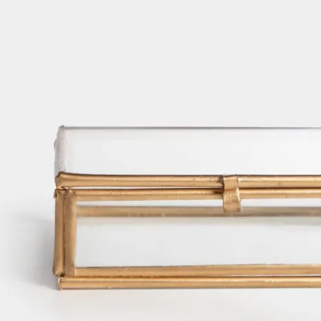 La caja decorativa Cerul es una elegante pieza que combina sofisticación y funcionalidad. Fabricada con una estructura metálica en un tono dorado, esta caja presenta paneles de cristal que le dan un toque de transparencia y ligereza. Su diseño refinado la convierte en un accesorio ideal para exhibir pequeños objetos, joyas o incluso como elemento decorativo en mesas, estanterías o vitrinas.