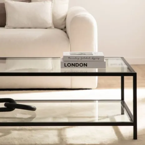 Dale un aire estiloso a tu sala de estar con la mesa de centro Crisal. Esta elegante pieza combina la transparencia y sofisticación del cristal con la solidez y modernidad del metal negro, creando un mueble minimalista y versátil que se adapta perfectamente a decoraciones modernas, industriales o contemporáneas. Esta pieza se convertirá en el complemento ideal para realzar la decoración de tu salón.