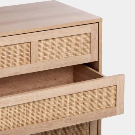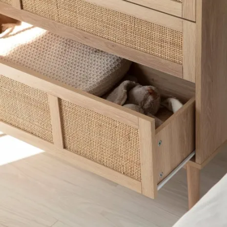 Transforma la habitación de tu hijo con la cómoda Ikigai, acabada en madera y ratán natural. Su estilo escandinavo con toques minimalistas crea un ambiente relajante y especial perfecto para su descanso. Sus tres amplios cajones le permitirán mantener su ropa, juguetes y todas sus cosas bien organizadas y siempre a mano. Combínala con otros muebles de la colección para crear un espacio único que nunca pasará de moda.