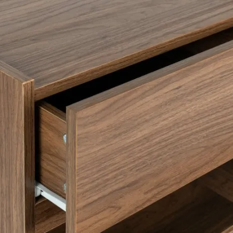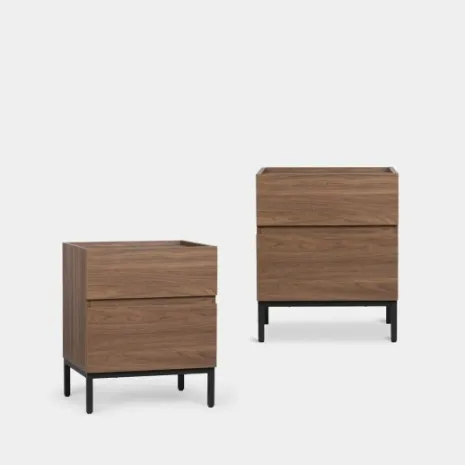 ¡Aprovéchate de este pack de 2 mesitas! Renueva tu habitación con la mesita de noche Peyton, que combina un acabado en madera color nogal con elegantes patas metálicas negras. Su estilo moderno y minimalista aporta sofisticación y carácter a cualquier dormitorio. Cuenta con dos cajones que proporcionan almacenamiento funcional y organizado para todos tus elementos esenciales. Descubre el resto de la colección Peyton y crea un ambiente único y contemporáneo en tu hogar.