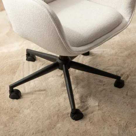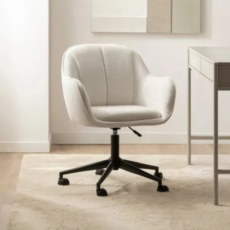 La silla de escritorio Tess combina estilo y funcionalidad para elevar tu espacio de trabajo. Su tapizado beige y su textura suave aportan calidez y elegancia, creando un entorno acogedor que favorece la concentración. Cuenta con reposabrazos, altura ajustable, base giratoria y ruedas, para que disfrutes de la comodidad y movilidad que necesitas durante tu jornada. Una opción práctica y con personalidad para tu oficina o rincón de estudio.