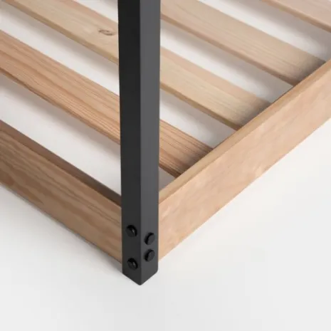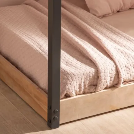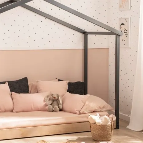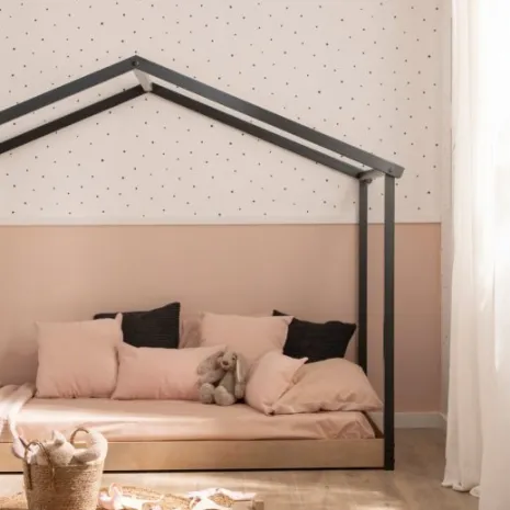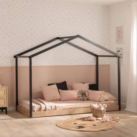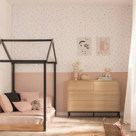 La cama infantil Vitta es la opción perfecta si buscas un estilo divertido y elegante en la habitación de tu pequeño. Su estructura en forma de casita añade un toque lúdico y acogedor a la estancia. Está pensada para fomentar la autonomía de los niños, ya que permite que se suban y bajen con gran facilidad, promoviendo su independencia y libertad. La base en madera de pino natural ofrece resistencia y estabilidad. Esta cama es compatible con colchones de 90×200 cm.
