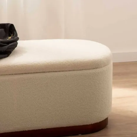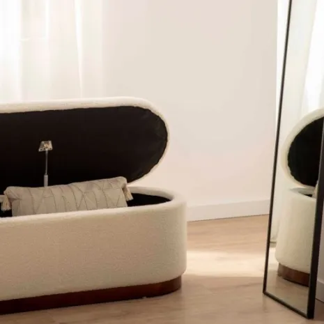 El banco Isola, tapizado en suave borreguito blanco, combina estilo y funcionalidad de manera excepcional. Su diseño elegante y acogedor no solo brinda confort, sino que también añade un aire de frescura a cualquier ambiente. Con un práctico compartimento de almacenamiento, es perfecto para mantener organizados mantas, cojines y otros objetos. Ideal para el salón, el dormitorio o el recibidor, el banco Isola se presenta como una pieza versátil y encantadora que realza la decoración de tu hogar.