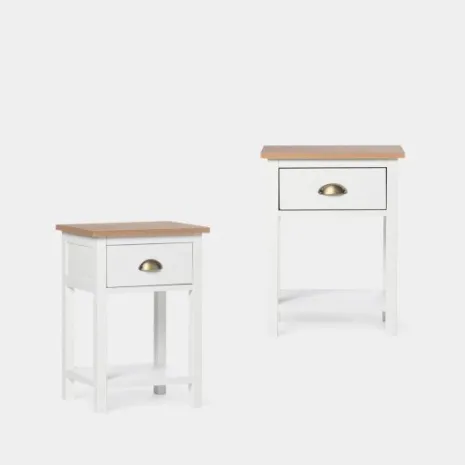¡Aprovéchate de este pack de mesitas! La mesita de noche blanca de un cajón Marais es un clásico que encaja en cualquier dormitorio. Cuenta con un cajón y con un estante inferior en el que podrás dejar todo lo que quieras tener a mano. El cajón cuenta con un sistema de cierre con retención que evita que se den golpes al cerrar e impide la apertura involuntaria. Combínala con la cómoda Marais y crea un dormitorio lleno de encanto.