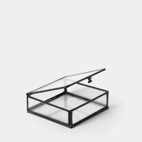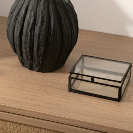 La caja decorativa Cerul es una elegante pieza que combina sofisticación y funcionalidad. Fabricada con una estructura metálica en color negro, esta caja presenta paneles de cristal que le dan un toque de transparencia y ligereza. Su diseño refinado la convierte en un accesorio ideal para exhibir pequeños objetos, joyas o incluso como elemento decorativo en mesas, estanterías o vitrinas.