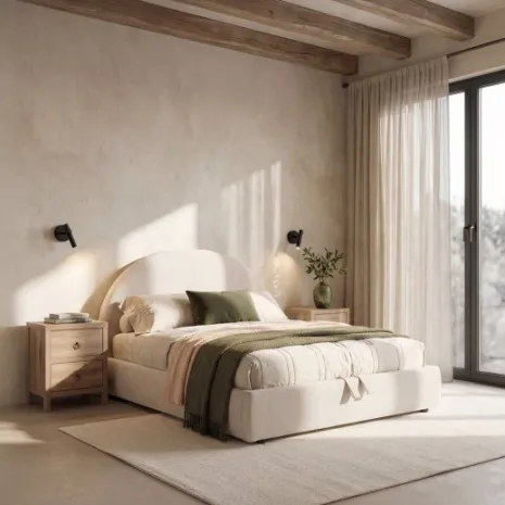 Transforma tu dormitorio con la cama con canapé abatible Selene. Su diseño de forma redondeada y el tapizado en color beige crean un ambiente acogedor que redefinirá tu zona de descanso. Pensada para la máxima funcionalidad, incorpora un práctico canapé con gran espacio de almacenaje para que puedas guardar todo lo que necesites. Además, el cabecero es desenfundable y lavable en frío, facilitando su mantenimiento y limpieza. Esta cama es apta para colchones de 150×190 cm.