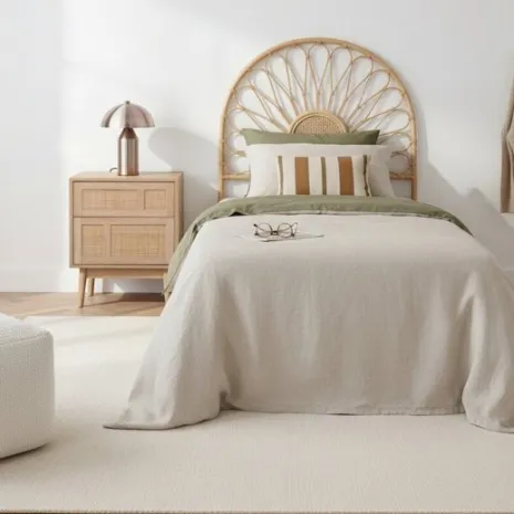 Dale un toque natural y fresco a tu dormitorio con el cabecero Fera. Fabricado artesanalmente en ratán natural, esta pieza añade calidez y autenticidad a tu hogar. Se puede utilizar en camas de 80 y 90 cm. Requiere anclaje a la pared.