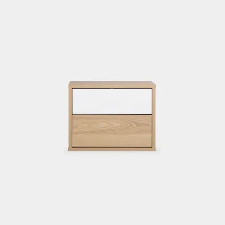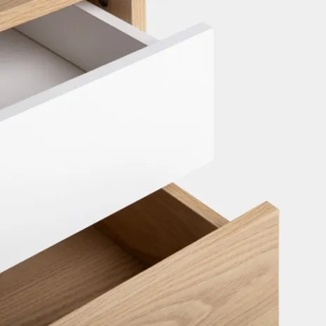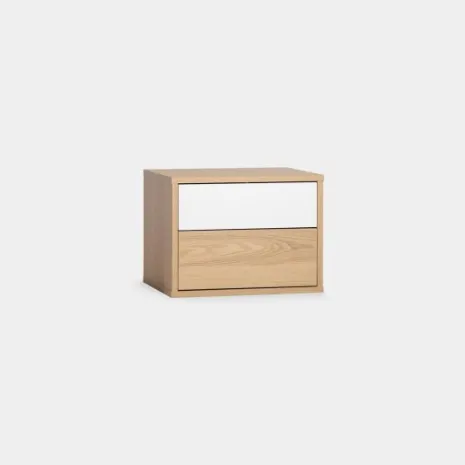 La mesita de noche flotante Kanye combina funcionalidad y estilo en una pieza única. Acabada en madera natural y blanco, crea un contraste elegante que aporta personalidad a tu dormitorio. Sus dos cajones ofrecen espacio de almacenamiento práctico y discreto para tus objetos personales, mientras que su diseño flotante optimiza el espacio y aporta sensación de amplitud. Una solución perfecta si buscas un estilo contemporáneo y funcional para tu hogar.