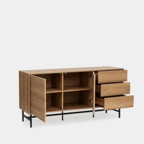 Realza tu comedor con el aparador Land en acabado natural. Es la pieza ideal si buscas un diseño moderno que combine la calidez de la madera con la solidez del metal. Su diseño combina tres amplios cajones, perfectos para cubiertos y pequeños accesorios, con dos puertas de almacenamiento para guardar objetos de mayor tamaño de forma ordenada. Descubre el resto de la colección Land y dale un nuevo aire a tu hogar.