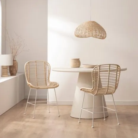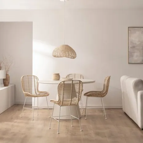 La silla de comedor Leo, elaborada en ratán natural, añadirá ese toque cálido y natural que estás buscando para tu hogar. Su asiento está fabricado artesanalmente con ratán natural, un material resistente y duradero que nunca pasa de moda. Puede presentar irregularidades y ligeras variaciones en el color, lo que añade un encanto único a cada pieza.