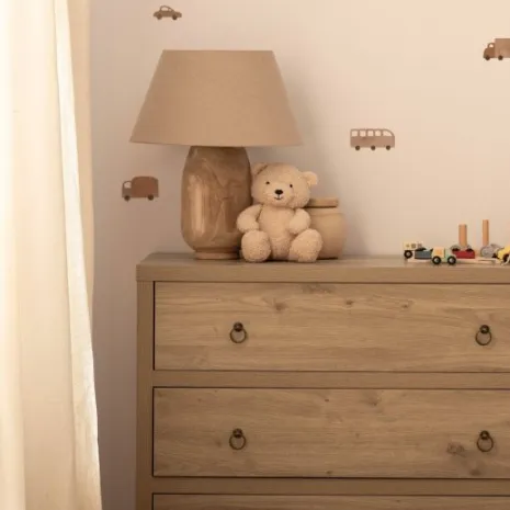 La cómoda Livorno en madera natural es una opción perfecta para la habitación de tu pequeño. Con su diseño sencillo y funcional, ofrece amplio espacio para guardar su ropa y juguetes. Su acabado natural aporta calidez y crea un ambiente acogedor perfecto para él. Combínala con otros muebles de la colección Livorno y dale a su cuarto ese toque armonioso que estás buscando.