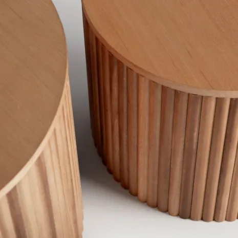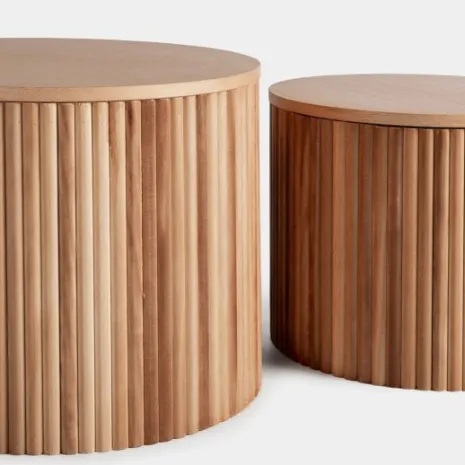 Con el set de dos mesas de centro Vemi, elaboradas en chapa de roble y madera de paulownia, añadirás a tu hogar un toque de tendencia y estilo. Su diseño te permite utilizarlas juntas o por separado según tus necesidades. Además, ofrecen un práctico espacio de almacenamiento, perfecto para mantener organizado tu salón. Puedes combinarlas con el resto de la colección Vemi para conseguir un espacio funcional, armonioso y con carácter.