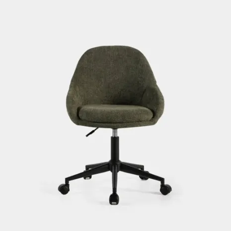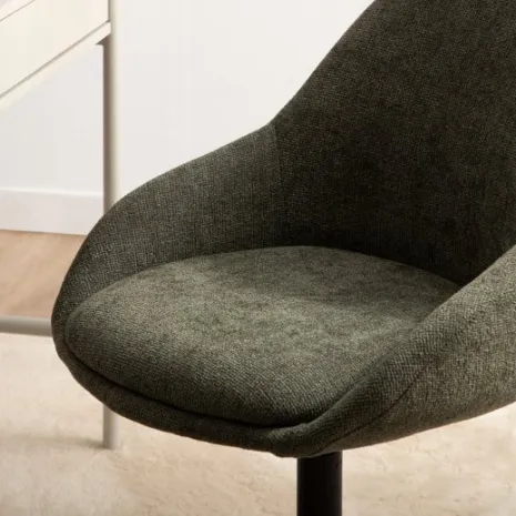 La silla de escritorio Ania es la combinación perfecta entre elegancia y funcionalidad para tu espacio de trabajo. Su tapizado en verde y el asiento acolchado aportan calidez y estilo sin dejar de lado la comodidad. Con su sistema giratorio, altura regulable y ruedas tendrás total libertad de movimiento para encontrar la posición ideal. Está disponible en otros colores, para que elijas la opción que más te guste.