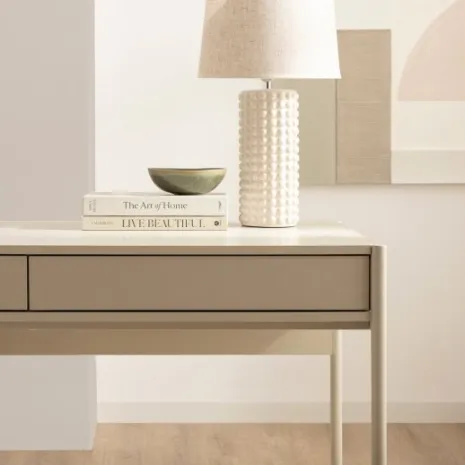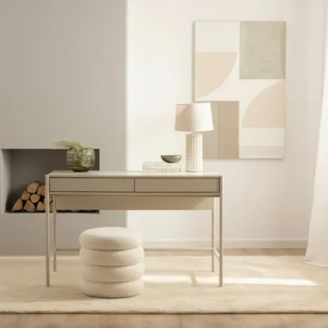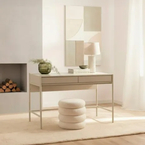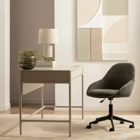 Transforma tu espacio de trabajo con el escritorio Cleo, acabado en color gris perla. Sus líneas sencillas y su diseño ligero aportan modernidad y funcionalidad a despachos y oficinas en casa. Equipado con dos cajones de apertura push, ofrece el almacenamiento necesario de manera accesible para guardar tus documentos o material de trabajo. Este escritorio combina una estética minimalista con una funcionalidad excepcional, ideal para crear un ambiente de trabajo organizado y acogedor.