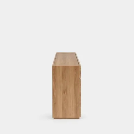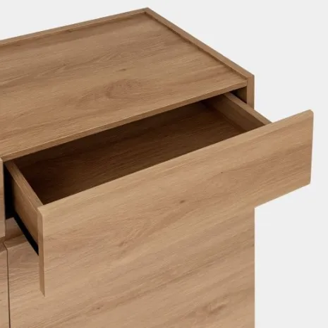 El aparador Einar en acabado madera natural es la pieza clave para organizar tu comedor o salón. Su diseño nórdico se caracteriza por líneas sencillas y elegantes detalles, creando un mueble atemporal y sofisticado que encaja bien en cualquier decoración. Pensado para la máxima utilidad, combina cajones y estantes para ofrecer un almacenamiento generoso y práctico. Es ideal para guardar vajillas, mantelería y otros enseres del hogar de forma ordenada. Combínalo con el resto de la colección Einar para conseguir un ambiente sereno, cálido y acogedor en tu hogar.