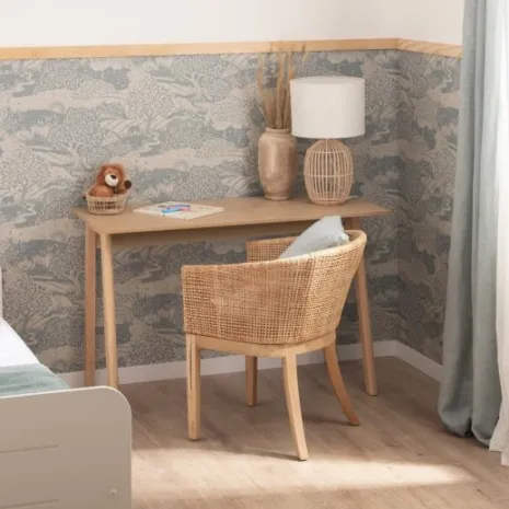 Crea un espacio de estudio perfecto para tu pequeño con el escritorio infantil Erik. Su diseño en madera, de estilo escandinavo, aporta un toque moderno y cálido a cualquier habitación. Es ideal para hacer los deberes, dibujar o desarrollar su creatividad con total comodidad. Funcional y versátil, acompañará su crecimiento. También está disponible con el tablero acabado en blanco, ¡elige el que más te guste!