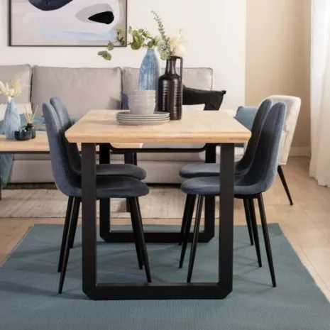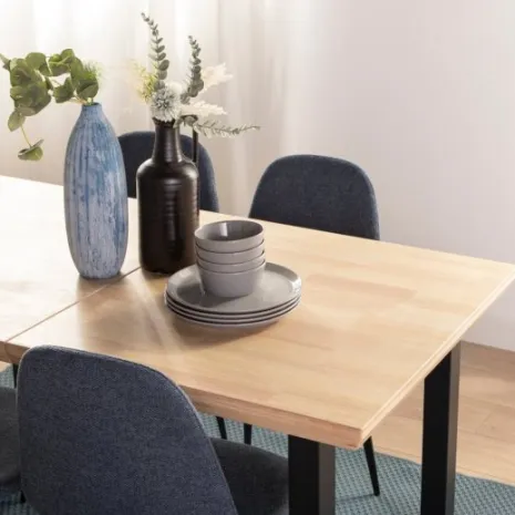 La mesa de comedor rectangular extensible 140/180 Khonor fabricada en madera de hevea con pata metálica negra es la opción perfecta para completar tu comedor o cocina. Cuenta con un sistema extensible con el que podrás ampliar sus medidas a 180 sin esfuerzo, pasando de una mesa de 6 comensales a una de 8 en cuestión de segundos.