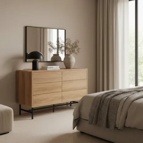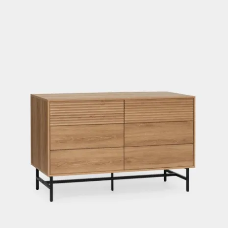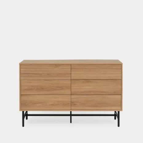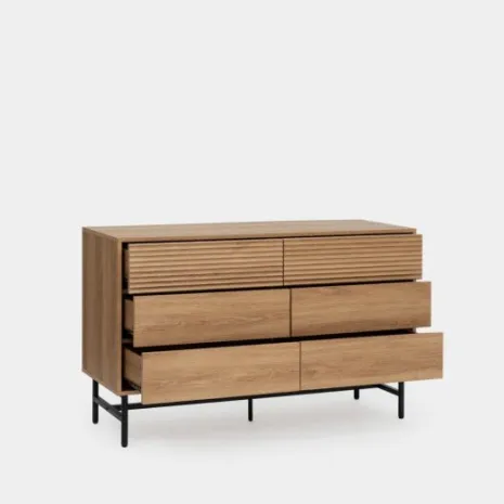 La cómoda de 6 cajones Land combina la calidez de la madera y la solidez del metal en un diseño moderno y elegante. Sus seis amplios cajones te proporcionan una gran capacidad, permitiéndote mantener tu ropa y accesorios totalmente organizados y accesibles. Imprescindible para cualquier dormitorio o vestidor que necesite ese extra de almacenamiento. Descubre el resto de la colección Land y dale un nuevo aire a tu habitación.
