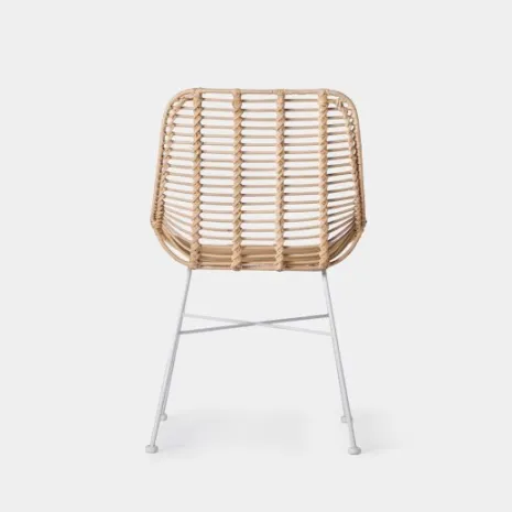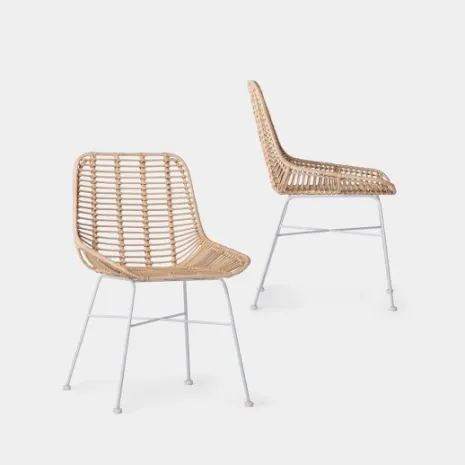 La silla en ratán natural con pata blanca Lui aportará confort y calidez a tu hogar. Está formada por una estructura metálica y un asiento elaborado de forma artesanal con ratán natural. Por ello, puede presentar irregularidades propias de su elaboración y ligeras variaciones en la tonalidad respecto al color que se muestra en la imagen.